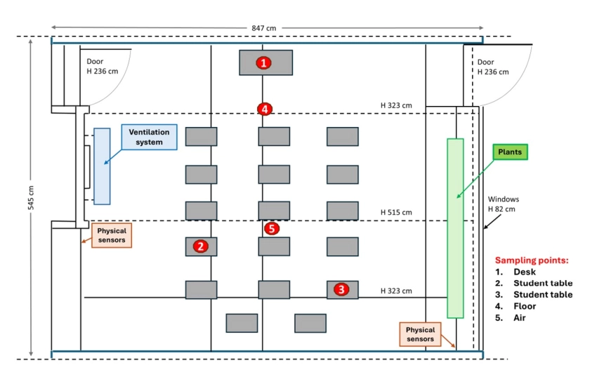 Educational institutions, such as schools, serve as primary living environments during the educational phases of human life, as students typically spend one-third of their day there. Characterizing the microbiome in these environments is crucial to understanding how it can affect students’ health, wellbeing, and daily performance. Indoor school microbiomes can be shaped by several factors, including occupants’ features (gender, age groups) and activity, ventilation modalities, building materials, air pollutants, and environmental hygiene practices .
