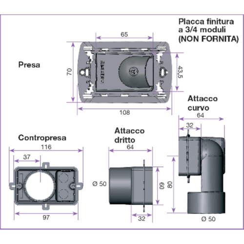- installazione a parete tramite contropresa in ABS;