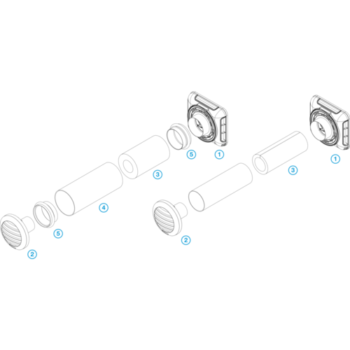 4) Tubo circolare per attraversare il muro Ø125mm : sulle due estremità del tubo utilizzare il raccordo EHT 2 /PVC Ø 125