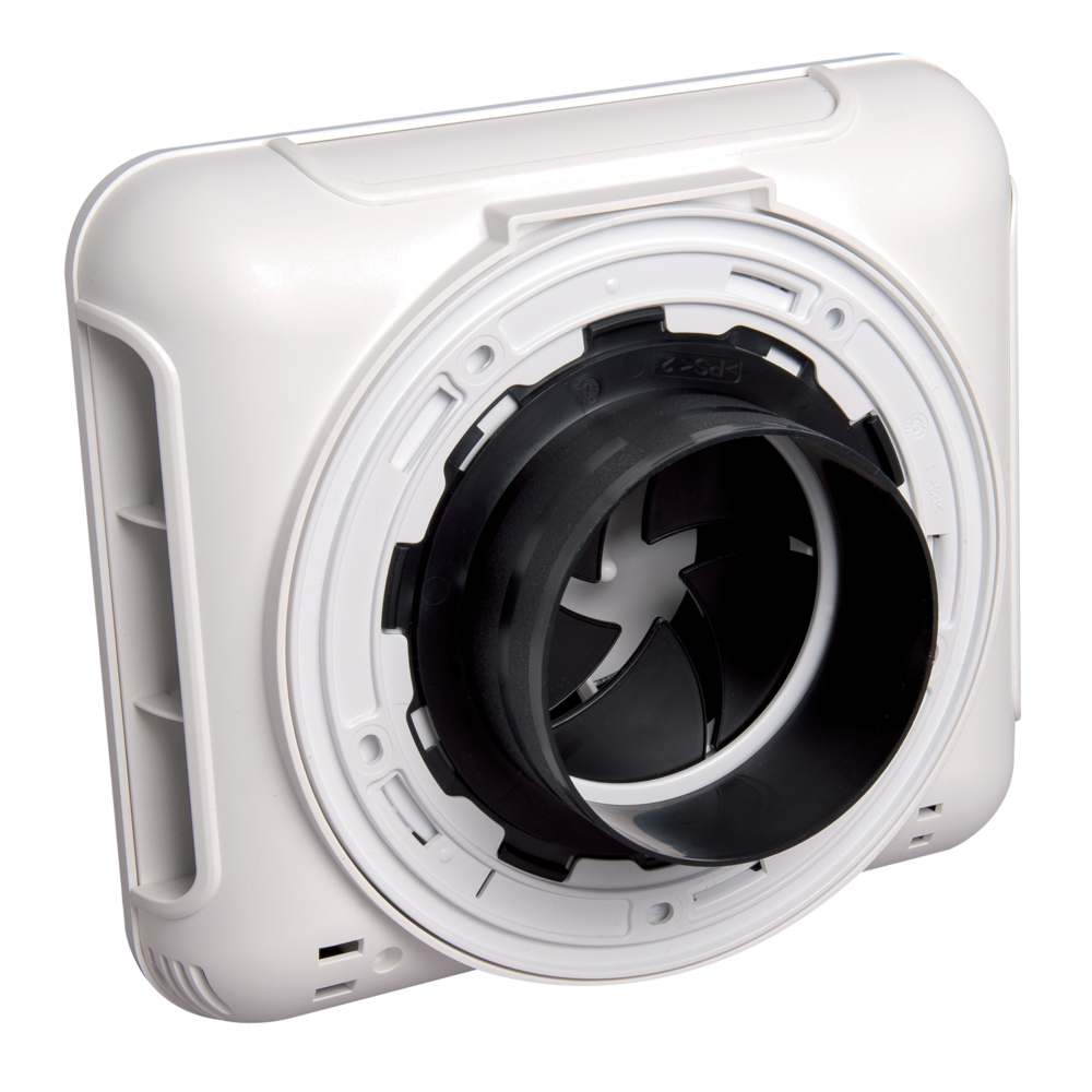 Ingresso d’aria igroregolabile (EHT²) o autoregolabile (EFT2) ideale per posa passante muro quando non è possibile installare ingressi aria sugli infissi o sui cassettoni degli avvolgibili.