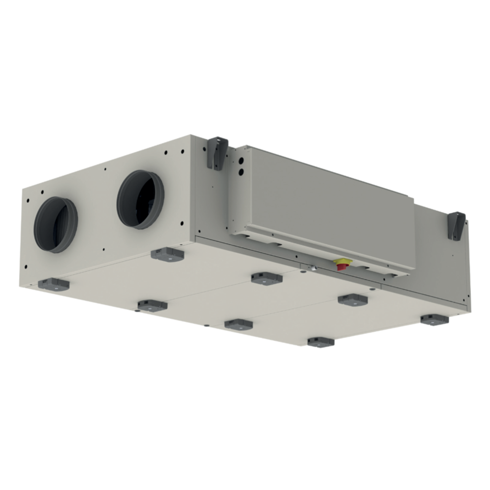 La CX3000 porta aria nuova e filtrata nell'edificio e recupera il calore dell'aria estratta grazie al suo scambiatore di calore ad alta efficienza. L'aria in entrata può essere riscaldata e/o raffreddata con una gamma completa di batterie interne ed esterne.