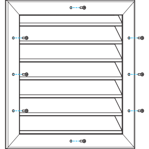 - La griglia AG 638 rettangolare in alluminio permette il passaggio dell’aria tra l’edificio e l’esterno per consentire il rinnovo dell'aria interna. La forma delle alette impedisce alla pioggia di penetrare