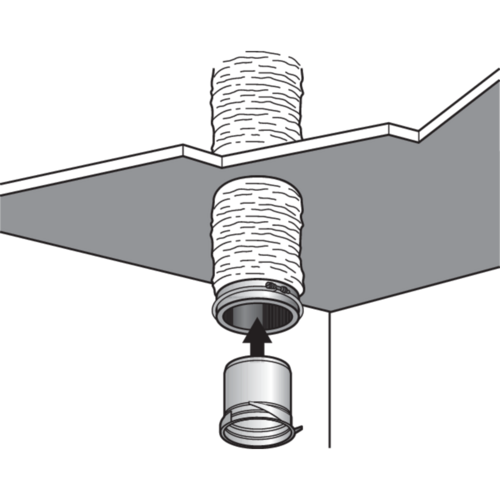 - manichetta di collegamento con condotto rigido o flessibile con fissaggio tramite clip