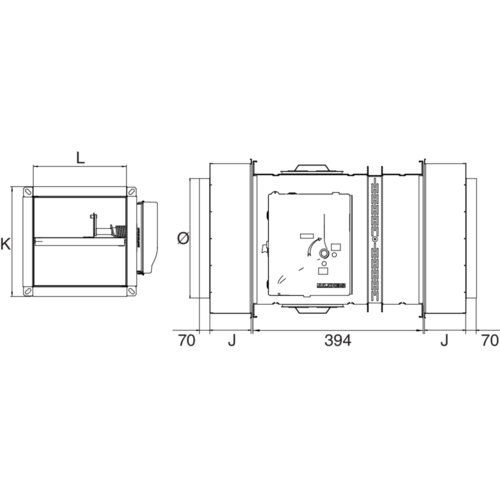 | Riferimenti | A (mm) | B (mm) | C (°) | D (°) | J (mm) | K (mm) | L (mm) | Ø (mm) | Ø D (mm) | Peso (kg) |