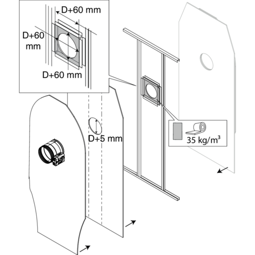- EI 120 S -500 Pa su parete e soffitto in cemento, calcestruzzo cellulare,