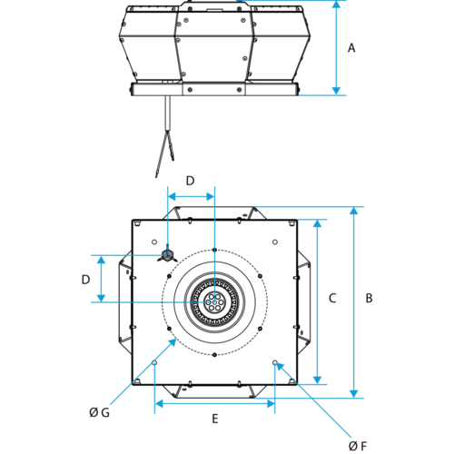 - Costruzione in alluminio AlMg3 resistente alle intemperie con altezza molto ridotta. Il blocco motore si inclina per facilitare l'installazione (accesorio) e manutenzione