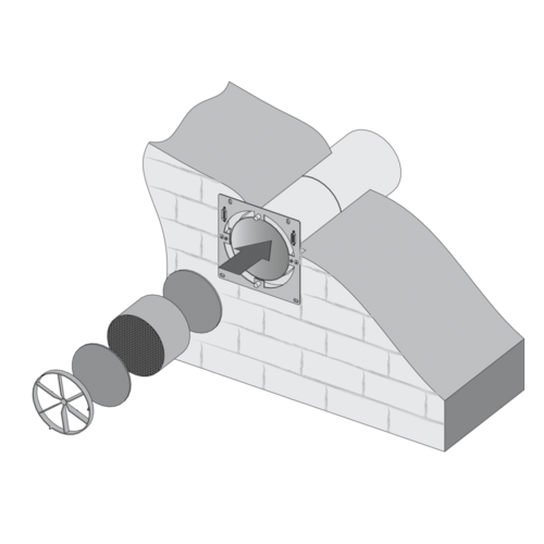 - l’estremità telescopica del condotto (lunghezza massima 425 mm) consente l’installazione della griglia di ventilazione esterna.