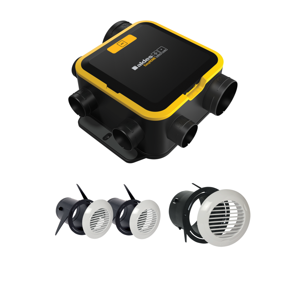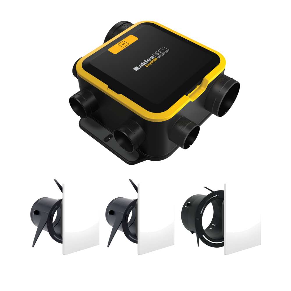 EasyHOME® AUTO Compact rinnova l’aria dell’alloggio 24 ore su 24 e dispone di 2 modalità di funzionamento: la modalità AUTO (portata dell’aria costante per ogni locale ventilata) e la modalità BOOST CUCINA con azionamento manuale (alta velocità in cucina attivata con un commutatore).