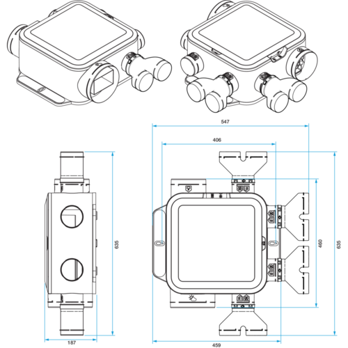 - 6 attacchi Ø80 sanitari (sono fornite di serie nr. 2 braghe Ø80)