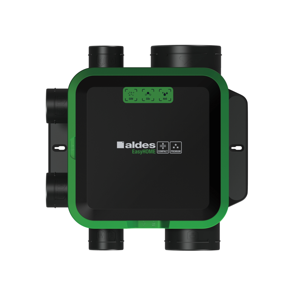 Grazie ai sensori CO2, COV (Compasti Organici Volatili) e di umidità, EasyHOME® Pure AIR rinnova l'aria regolando la velocità del ventilatore su 4 livelli differenti.